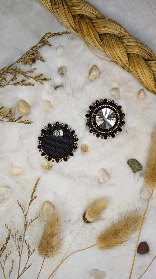 Black and Gold Beaded Earrings on Posts