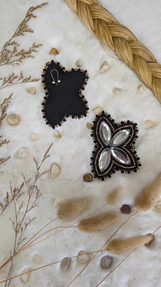 Black and Gold Beaded Earrings on Fingernail Posts