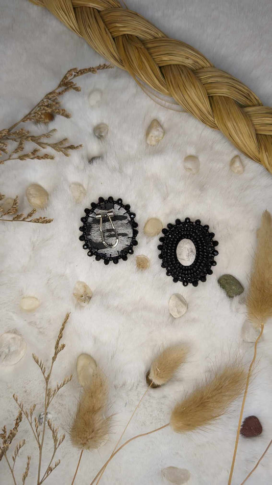 Black Beaded Earrings with Howlite Stone Centre on Fingernail Posts