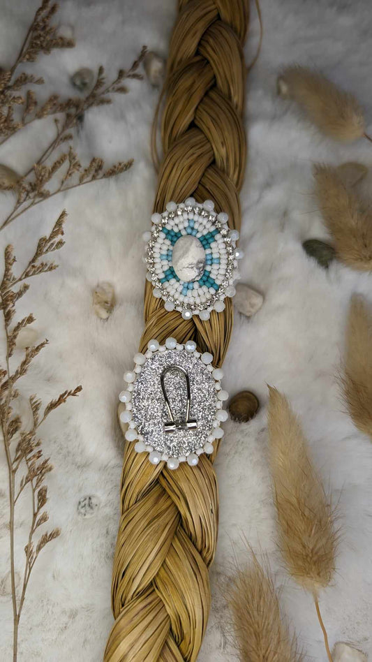 White and Turquoise Beaded Earrings with Howlight Stone Centre on Fingernail Posts